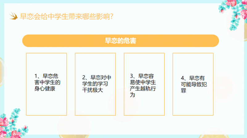在潘老师的班会课上,学生们被引导着思考什么是爱,什么是早恋。通过潘老师详实而又生动的语言,学生们对早恋的定义、危害有了更深的认识。
