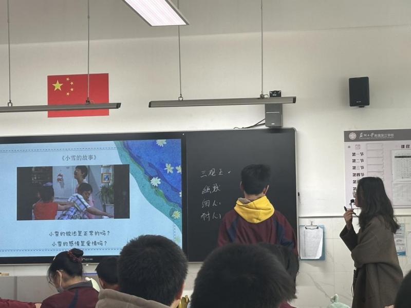 万物应时动,花开应有时。中学生正值青春期,处于半幼稚、半成熟的时期。青春期是人生中最美好也是最宝贵的时光,同时也是人生中最关键也最动荡的心理发展时期;而人际交往问题是触发青春期心理问题的关键点,健康的人际交往会促进学生学业及人格成长。为了更好的呵护每一位学生的心灵成长,引导学生正确渡过青春期,树立正确的青春期异性交往观,苏州大学附属吴江学校初一年级于3月20日开展了青春期异性交往主题班会。